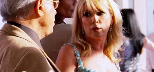 “You’re a princess,” says Ramona. Aviva calls her a 56-year-old trying to act young. Ramona says she needs to stop attacking her and accuses her of not being able to be apart from Reid. Aviva throw back that Ramona can’t be apart from alcohol. Aviva says Ramona is no friend to Sonja; that Sonja has a real problem and Ramona enables her. Ramona calls her crazy. They go at each other like two Aristo-cats, hissing a quiet refined way, leaning into each other across the table. No one else in the restaurant seems to hear them, no heads are turning. But their voices must be rising because suddenly, in the background, we glimpse a server frozen in place and staring at the camera, dead into their conversation. Well, someone had to notice that they hadn’t stopped yapping since Ramona sat down. Ramona sees this going nowhere and throws in the towel. But only after telling Aviva she has a stick up her ass. Then it’s see ya when I see ya. But they continue tossing insults until Ramona leaves the room. Aviva says she wants to stay as far away from her as possible.